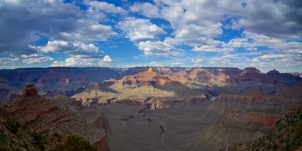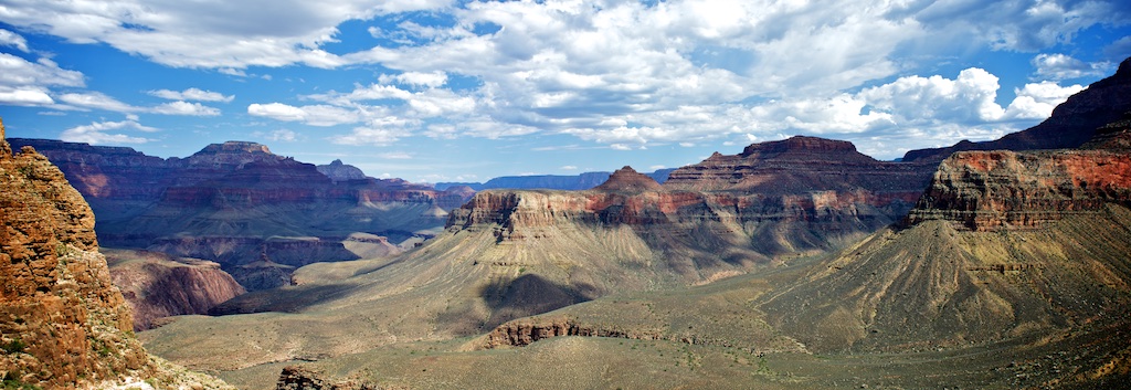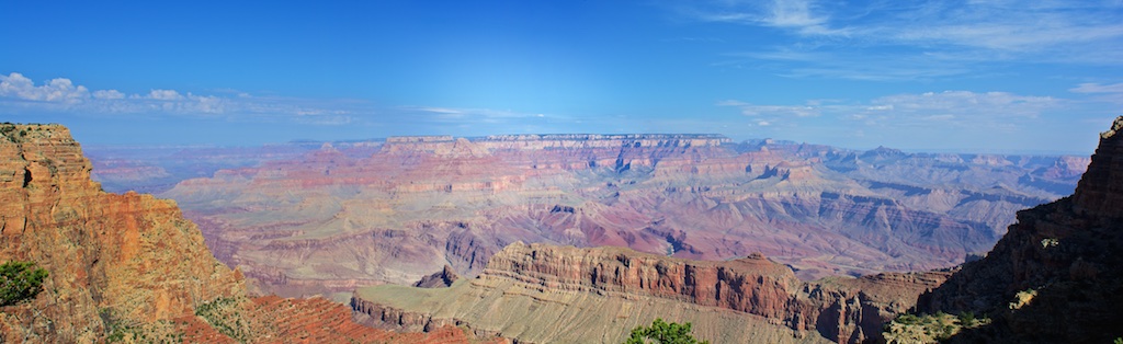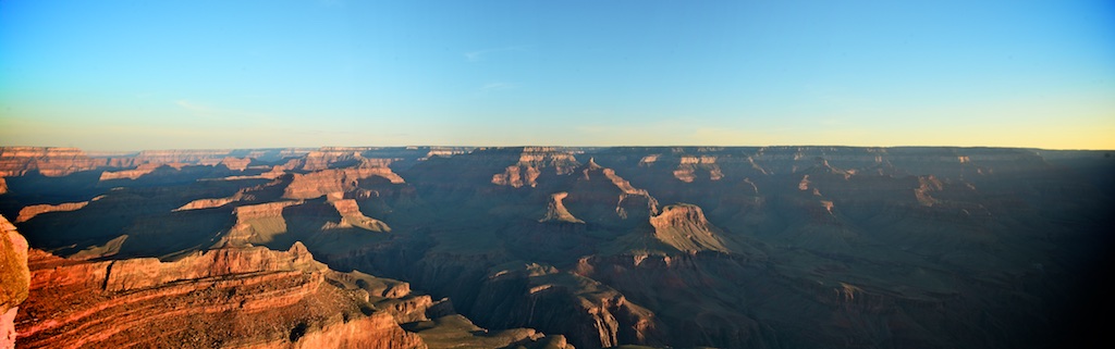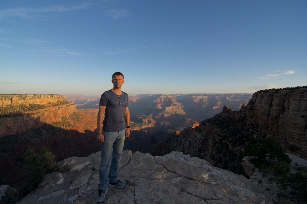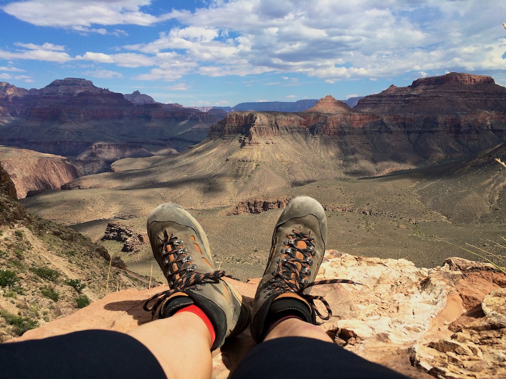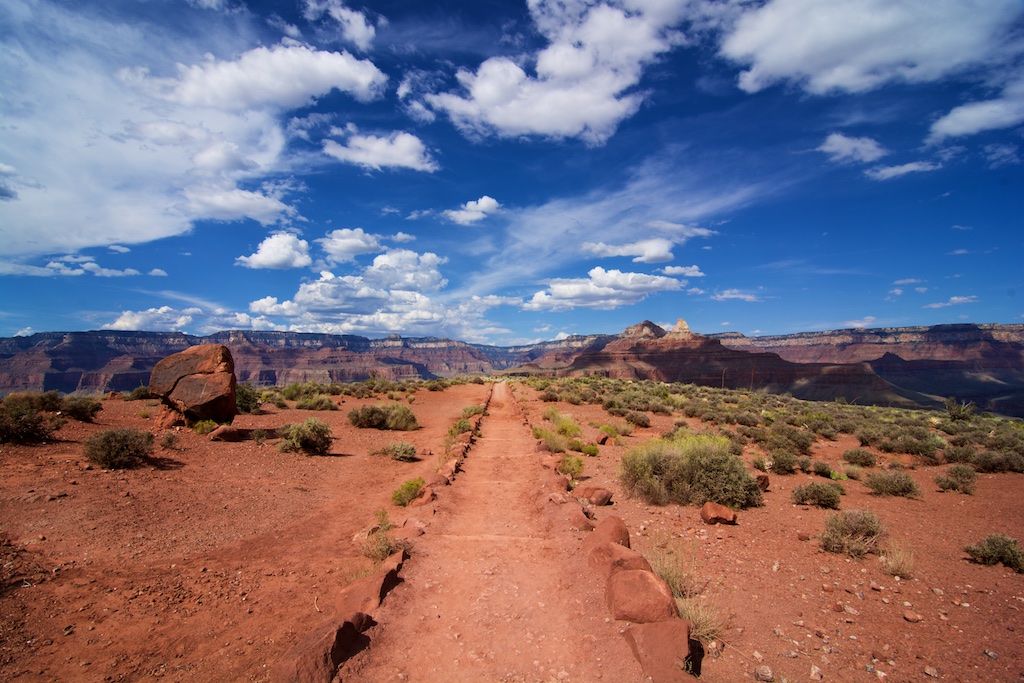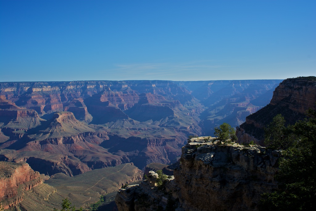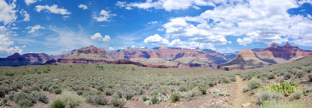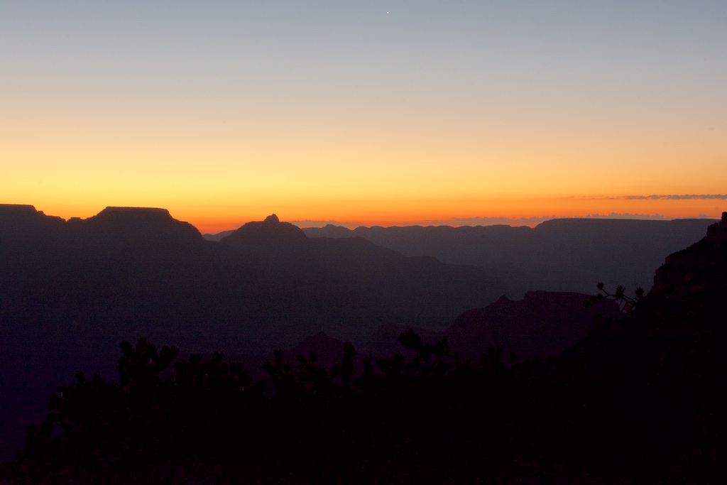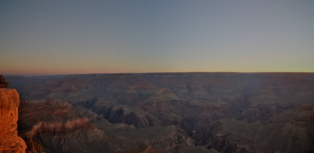 Dafür war ich dann am Samstag (komisch :-)) früh wach und durfte einen fantastischen Sonnenaufgang geniessen. Danach gings kurz zum Frühstück und um 8 war ich aufm Trail.. Eigentlich wollte ich runter bis zum Colorado und zurück, aber da überall Schilder standen dass man genau das NICHT probieren soll, bin ich die folgende Route, die ich bei etwas niedrigeren Temperaturen durchaus empfehlen kann gegangen: Bright Angel Trail bis Indian Garden – Tonto Trail – South Kaibab Trail zurück aufs Rim. Eine echte Herausforderung, 28km bei bis zu 40 Grad, dabei 1000hm runter und wieder hoch + den Tonto. Vor allem mit dem Wasser musste ich hinten raus etwas sparsam sein 😉