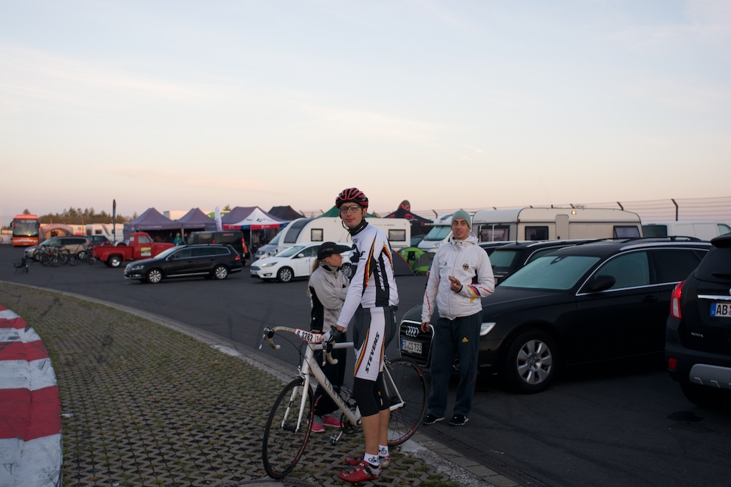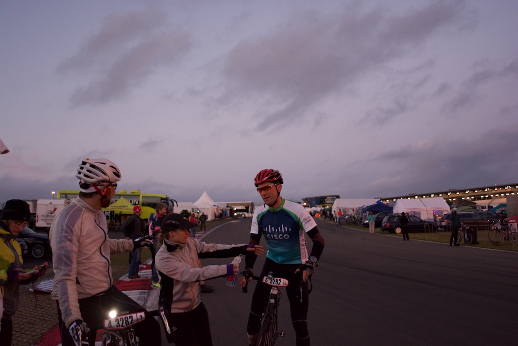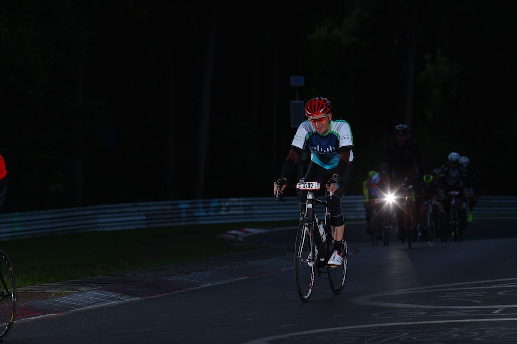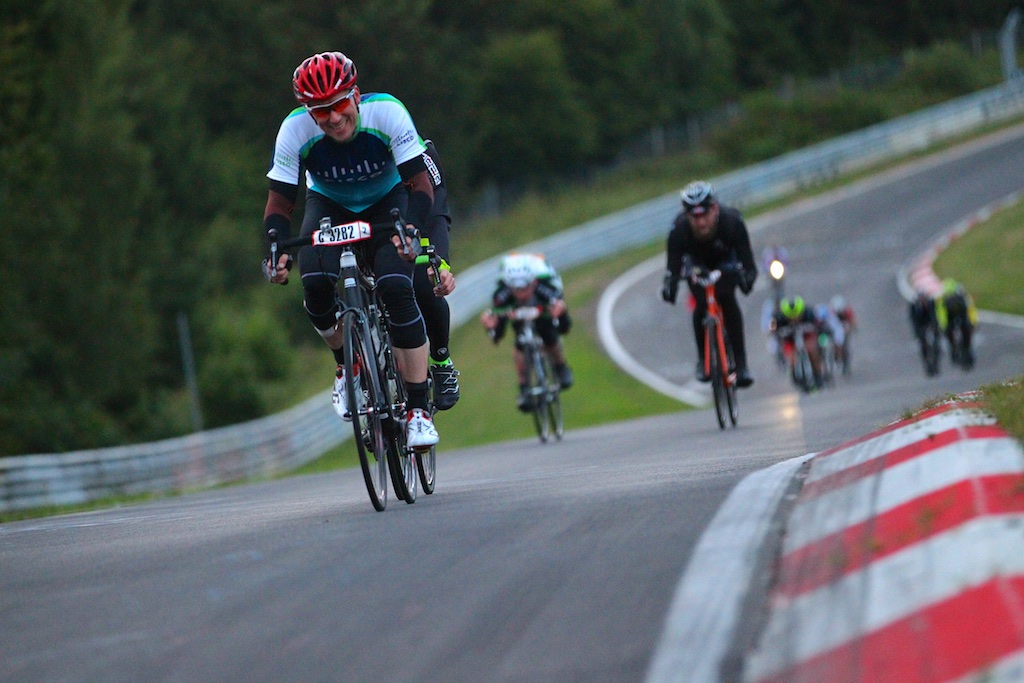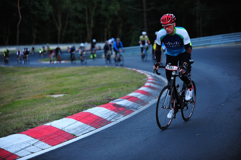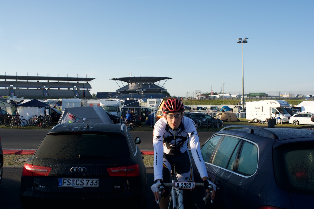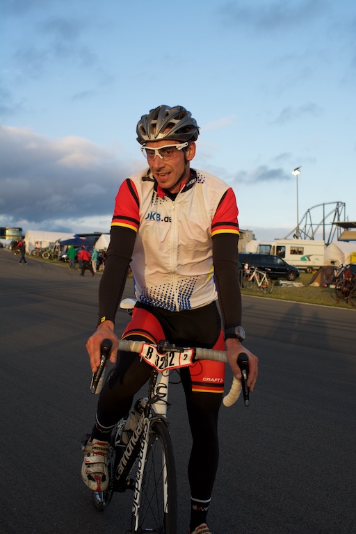 …diesesmal ohne Rollschuhe sollte es sein. Am letzten Wochenende waren wir, Robert, Sören, Markus, Conny, Jenny  und ich am Nürburgring um das 24h Rad am Ring (Jenny das Jedermannrennen und Conny als Betreuung fürs Team) Rennen mitzumachen. Eine ziemlich coole Veranstaltung, die Strecke (26km) mit einem echt krassen Profil (siehe unten). Leider hatten wir nicht so viel Glück mit dem Wetter, die Nacht vom Freitag zum Samstag hat es quasi durchgeregnet und gestürmt wie verrückt, das ganze hat sich bis in den Samstag nachmittag durchgezogen so das der Veranstalter dann beschlossen hat, dass Rennen erst 20:00 Uhr zu starten und das Jedermannrennen zum Unglück von Jenny zu streichen. Wir waren dann quasi 24 Stunden damit beschäftigt unser Zelt abzudichten und am Boden zu halten…Am Samstag Abend war die Strecke aber trocken und gut zu fahren, Sonntag war das Wetter sogar wirklich fantastisch. Interessant sind die Geschwindigkeiten die gefahren werden und die Erfahrung im Dunklen zu radeln, bei Nacht werden auf der ganzen Strecke genau 3 kritische Stellen beleuchtet, ansonsten hat man besser ein ordentliches Licht am Start 😉  Fürs erste Mal haben wir uns glaub ich mit Platz 72 ganz gut geschlagen, hart war danach noch am Sonntag nach Hause zu fahren, würde ich beim nächsten Mal anders machen, man ist einfach nach 48h ohne richtigen Schlaf echt durch.