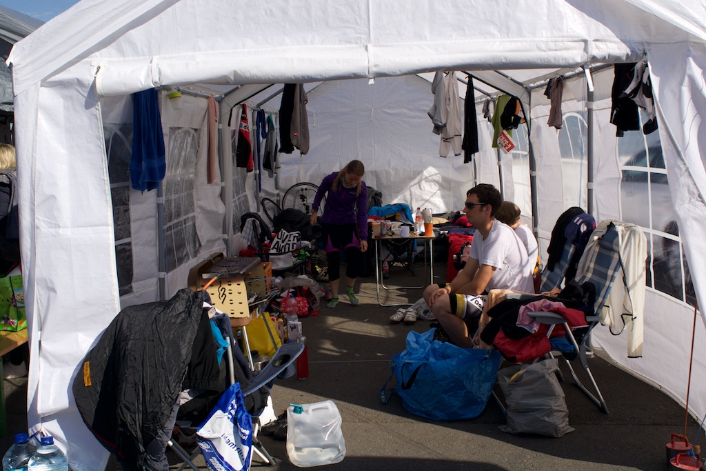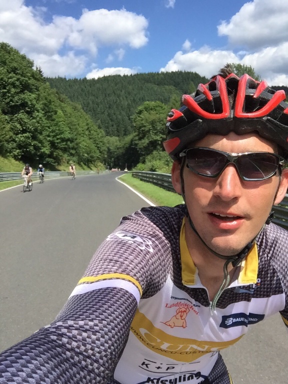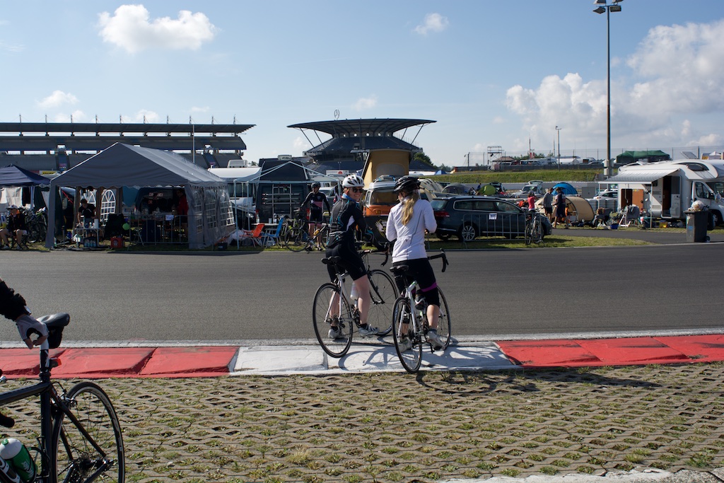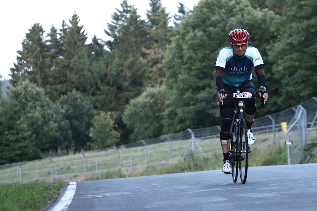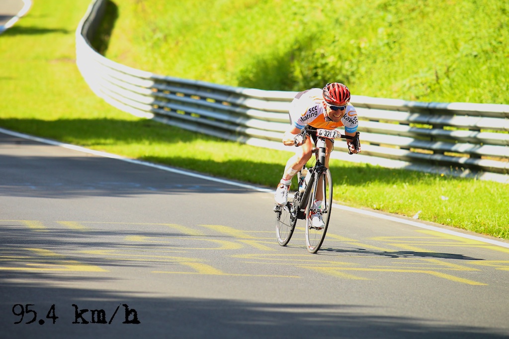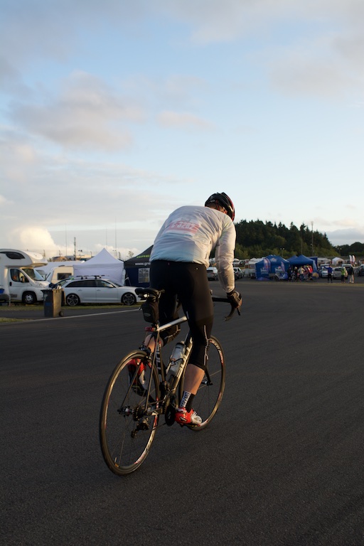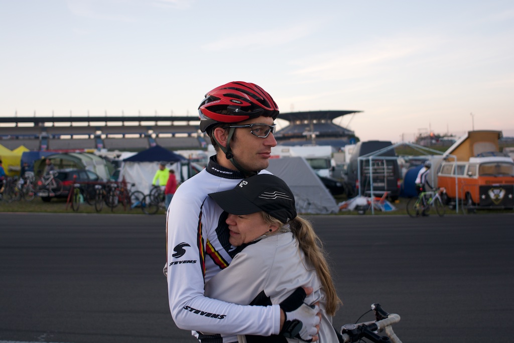 …diesesmal ohne Rollschuhe sollte es sein. Am letzten Wochenende waren wir, Robert, Sören, Markus, Conny, Jenny  und ich am Nürburgring um das 24h Rad am Ring (Jenny das Jedermannrennen und Conny als Betreuung fürs Team) Rennen mitzumachen. Eine ziemlich coole Veranstaltung, die Strecke (26km) mit einem echt krassen Profil (siehe unten). Leider hatten wir nicht so viel Glück mit dem Wetter, die Nacht vom Freitag zum Samstag hat es quasi durchgeregnet und gestürmt wie verrückt, das ganze hat sich bis in den Samstag nachmittag durchgezogen so das der Veranstalter dann beschlossen hat, dass Rennen erst 20:00 Uhr zu starten und das Jedermannrennen zum Unglück von Jenny zu streichen. Wir waren dann quasi 24 Stunden damit beschäftigt unser Zelt abzudichten und am Boden zu halten…Am Samstag Abend war die Strecke aber trocken und gut zu fahren, Sonntag war das Wetter sogar wirklich fantastisch. Interessant sind die Geschwindigkeiten die gefahren werden und die Erfahrung im Dunklen zu radeln, bei Nacht werden auf der ganzen Strecke genau 3 kritische Stellen beleuchtet, ansonsten hat man besser ein ordentliches Licht am Start 😉  Fürs erste Mal haben wir uns glaub ich mit Platz 72 ganz gut geschlagen, hart war danach noch am Sonntag nach Hause zu fahren, würde ich beim nächsten Mal anders machen, man ist einfach nach 48h ohne richtigen Schlaf echt durch.